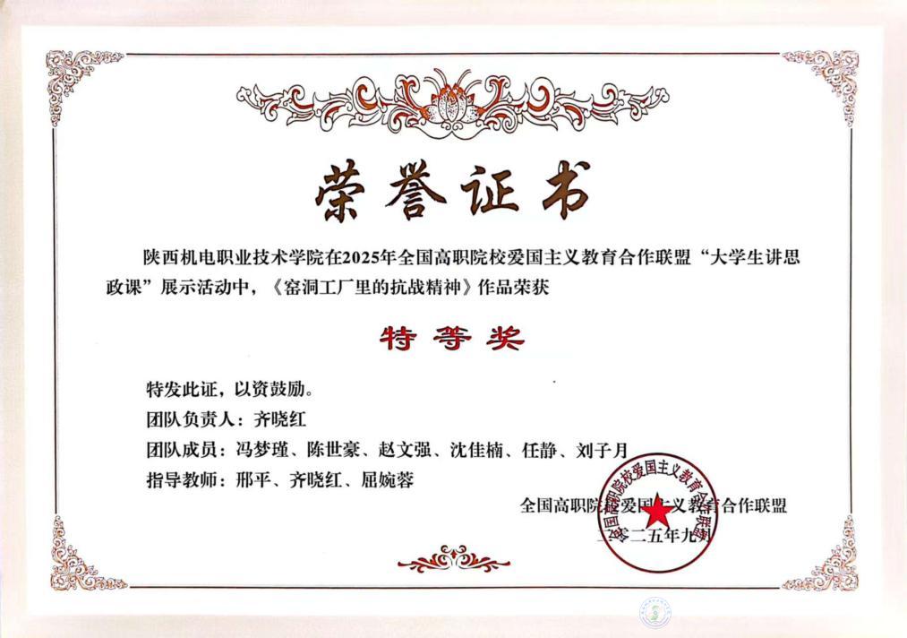 英国365上市公司马克思主义学院教师在2025年全国高职院校爱国教育合作联盟“大学生讲思政课”展示活动中,指导的“大学生讲思政课”作品——《窑洞工厂里的抗战精神》《传承红色基因 筑起铁路脊梁》分别荣获特等奖和一等奖。