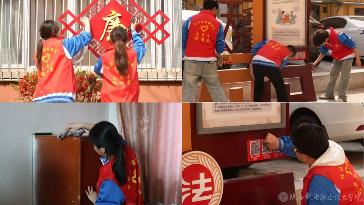 与此同时,宝福路校区和新福路校区的志愿者们走进姜谭路西社区,集中开展环境卫生清洁与便民维修服务。同学们手持夹子、垃圾袋、扫帚、抹布等工具,对社区主干道、楼道口、绿化带进行全面清扫,捡拾烟头、纸屑、塑料袋等垃圾,清理卫生死角与乱堆乱放,用汗水为社区换上整洁的“新面貌”。