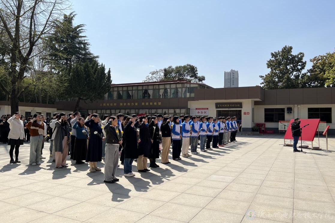 活动现场,全体师生在宝天铁路英烈纪念碑前整齐列队,怀着崇敬的心情向革命烈士敬献花篮、默哀致敬和鞠躬,并重温入党誓词、入团誓词。
