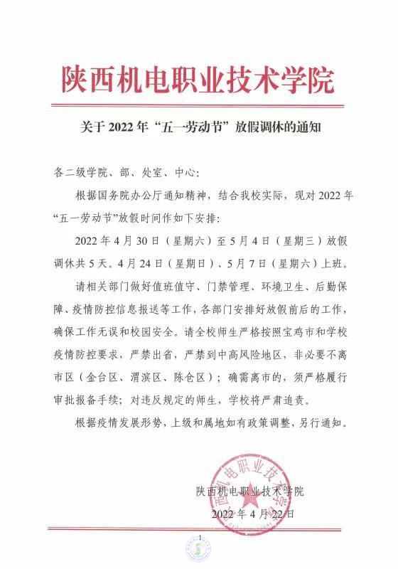 关于2022年“五一劳动节”放假调休的通知