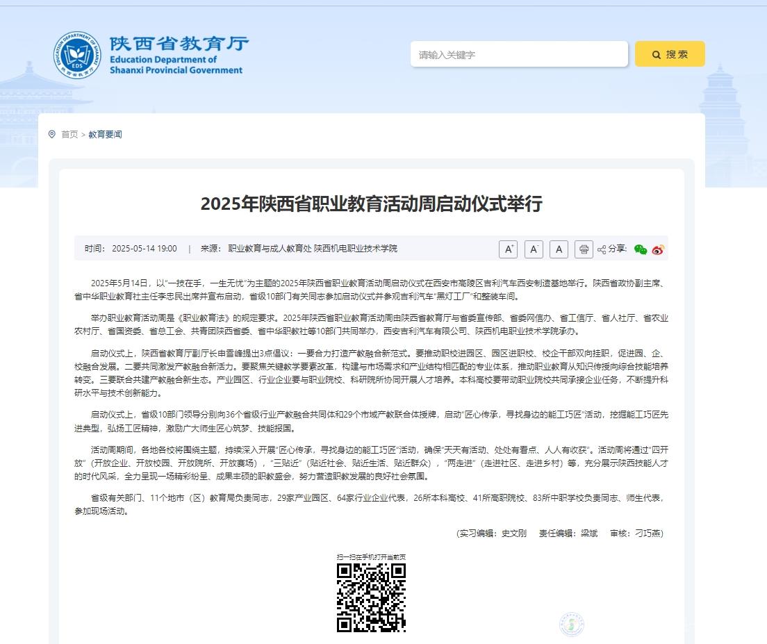 【陕西省教育厅】2025年陕西省职业教育活动周启动仪式举行