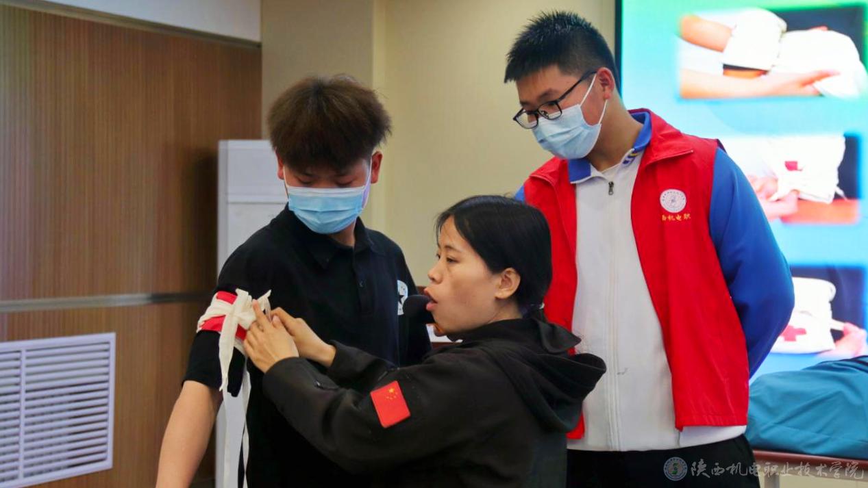 由苗青老师主讲的《赛会应急事件处理与急救技能训练》,志愿者们跟随苗老师指示,认真学习急救知识。