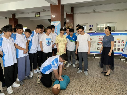 同学们拿着笔记本记录着,在聆听了培训师讲解急救步骤后小心翼翼地进行了实际操作。