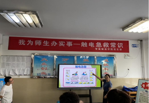 机电系主任白川为同学们进行细致详尽的触电急救知识科普,内容主要涉及应急救护基本知识、心肺复苏、创伤现场救护、逃生避险等知识。