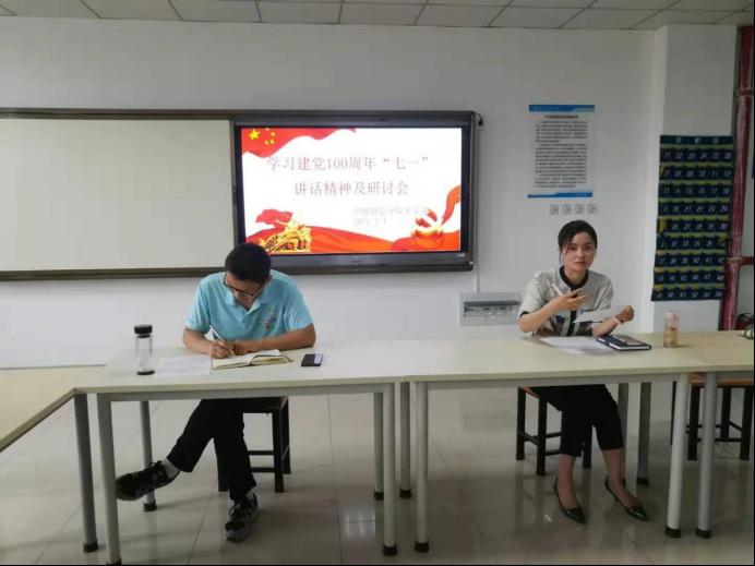 7月1日上午,智能制造学院党支部全体党员收看了庆祝中国共产党成立100周年大会盛况,收看结束后,支部第一时间安排了习近平总书记“七一”重要讲话精神集中学习及研讨交流活动,并于7月2日下午4时在汽车机电大楼502室顺利开展。