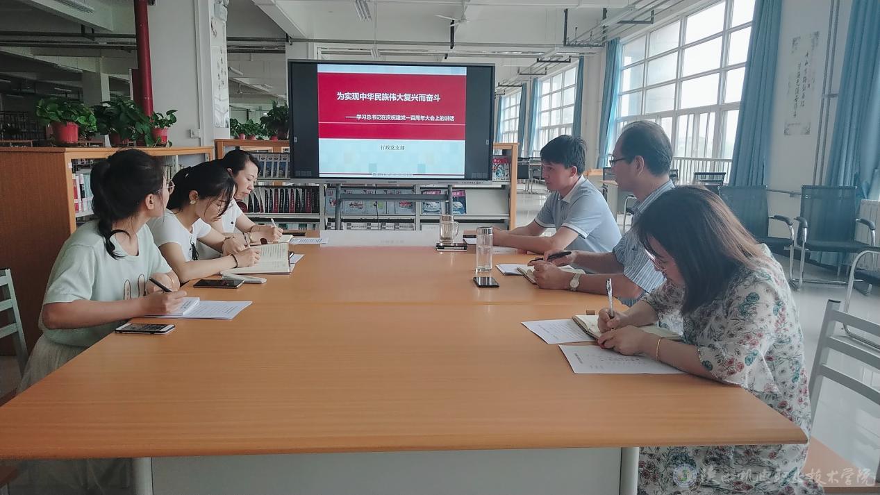 2021年7月1日上午,庆祝中国共产党成立100周年大会在北京隆重举行。7月2日,行政党支部在蟠龙校区图书馆二楼组织召开学习习近平总书记“七一”重要讲话精神专题研讨会暨支部书记讲党课,支部党员参加会议,积极分子李斌列席会议。