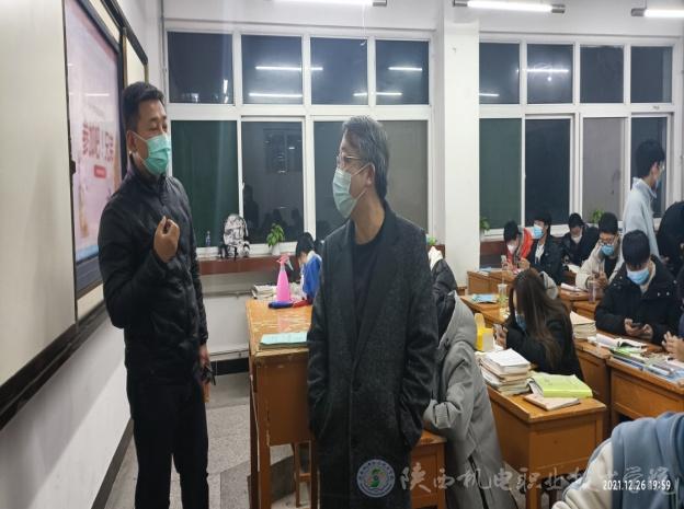 12月26日晚,党委学工部(学生处)对宝福路校区班级疫情防控工作及主题班会开展情况进行专项检查,党委学工部部长、学生处处长王建斌深入班级教室,检查疫情防控工作,旁听了智能制造学院20机电五年4班的主题班会课。