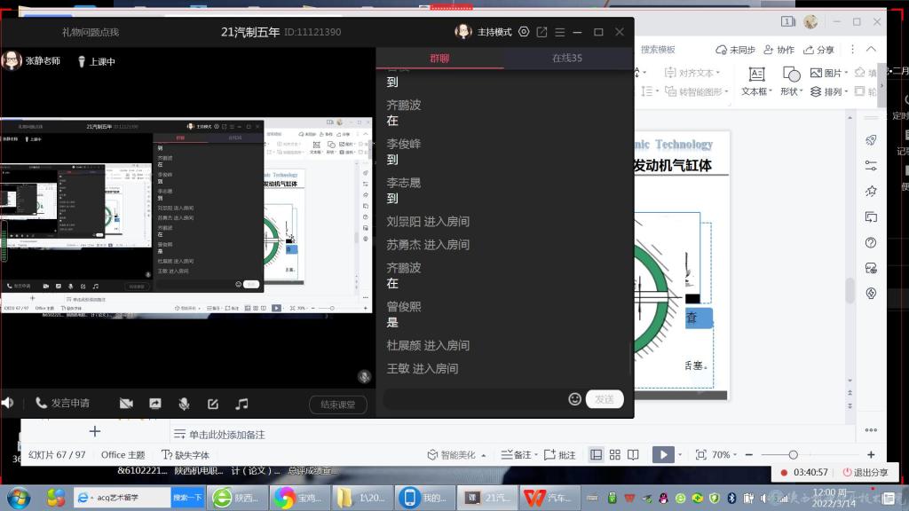 为保证2021-2022学年第二学期教学工作正常有序开展,及时应对疫情,汽车工程学院成立疫情防控期间线上教学工作领导小组,明确岗位分工,落实责任到位。汽车工程学院教师于3月14日全面开展线上教学工作。教学过程中各位教师精神状态饱满、教学方法灵活多样、教学环节设计完整有效,学生课堂参与积极,教学效果良好。