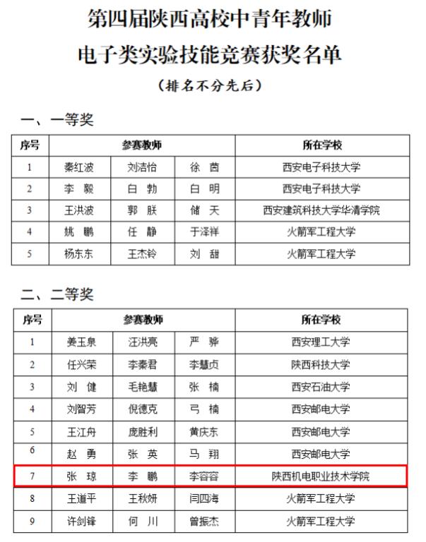 陕西省第四届中青年教师电子类实验技能大赛竞赛结果揭晓。英国365电子与信息学院两支参赛队参加了此次竞赛,其中张琼、李鹏、李容容组成的参赛队喜获二等奖,同时,英国365还荣获优秀组织单位奖,姜有奇老师被评为优秀组织个人。
