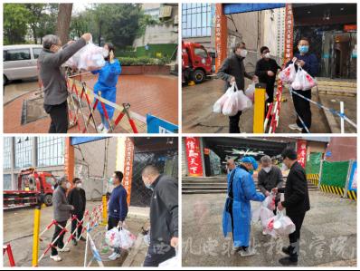 根据属地疫情防控工作要求,秋季学期学生返校后部分学生在校外集中隔离。10月13日学生处处长王建斌、电子与信息学院党支部书记高赋等一行代表学校,为他们送去了学校的问候和“爱心礼包”。