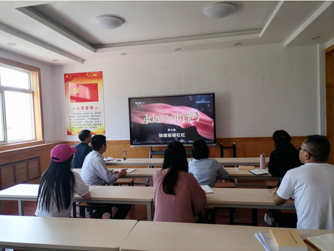 最后,全体党员集中观看了廉政教育片《永远吹冲锋号——铁规矩硬杠杠》。