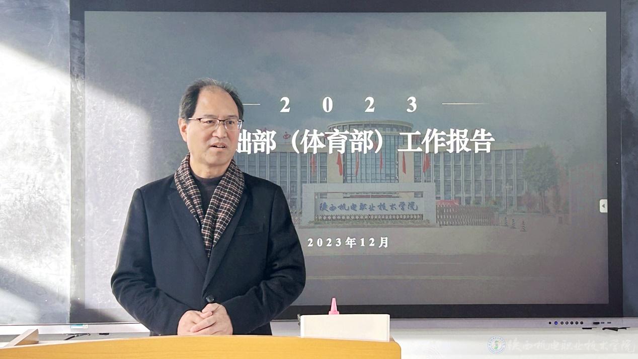 鉴往知来,思之愈勤,行之愈笃,知之益明。为进一步明确发展思路,深化教学改革,总结前期经验,给部门后续工作提供参考和指导,12月8日上午基础部(体育部)在蟠龙校区313室召开2023年度工作报告会议,党委书记伊逊智,党委委员、院长助理赵争东,党政办主任康健,党委组织部(统战部)综合科科长张玉琼及各教研室主任、教师代表参加本次会议。会议由基础部副部长李明主持。