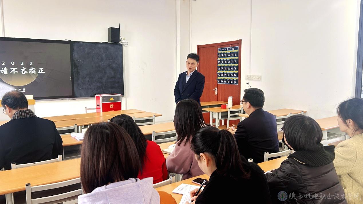 最后,伊逊智进行总结发言。他指出,本次报告内容客观公正、实事求是,并对部门前期教学工作、教学成绩、部门成果予以高度肯定。同时他强调教师是学校发展的重要支撑力量,要求基础课教师应结合专业建设,助力产业转型,并积极发挥“传帮带”优良传统,参与教研活动,提升专业技能,实现教育教学目标。