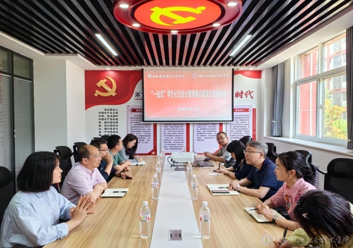 座谈会上,观看了西安航职业技术学院宣传片,就学生教育管理服务、辅导员队伍建设工作进展和经验做法、“一站式”学生社区的党建引领、队伍入驻、学生参与、条件保障等方面进行了深入交流。