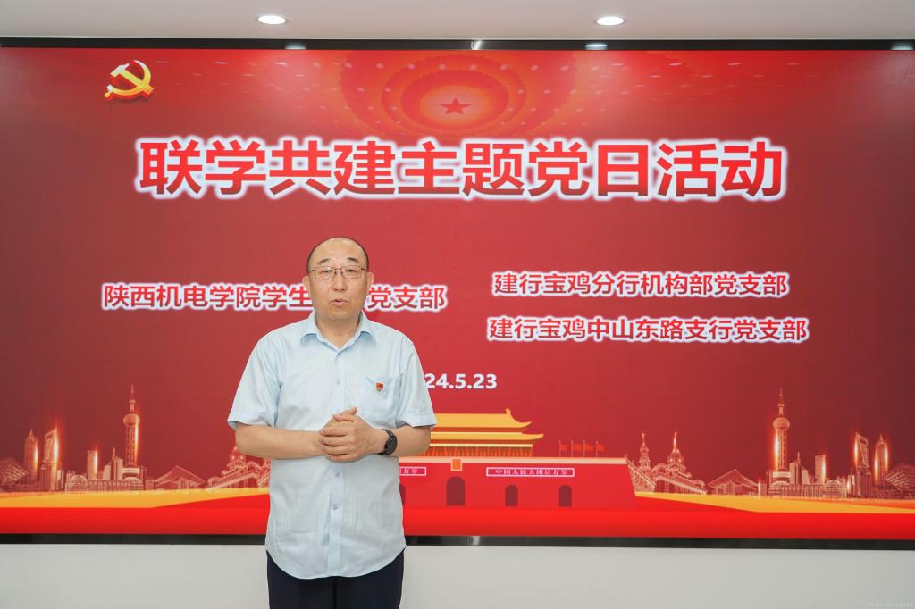 为深入贯彻落实党的二十大精神,以基层党组织为载体,以党建共建为动力,充分发挥各党组织优势,形成优势互补、资源共享的基层党建新格局,5月23日下午,学生工作党支部联合建行宝鸡分行机构部党支部、建行宝鸡中山东路支行党支部在英国365蟠龙校区图书馆2楼思政课虚拟仿真教学中心开展“学习榜样 凝聚力量”联学共建主题党日活动,“联学共建”支部全体党员参加,活动由学生工作党支部王建斌主持。