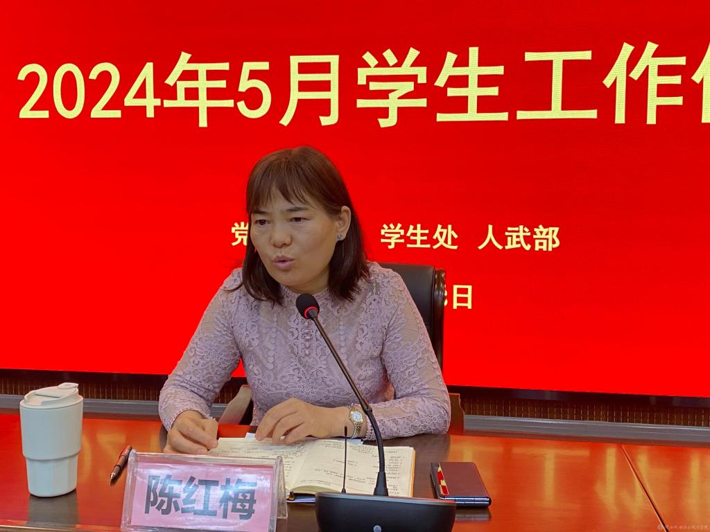 陈红梅讲话在总结讲话中指出,学生教育管理服务工作要紧紧围绕立德树人根本任务,结合学校重点工作任务,扎实、认真开展。同时提出了三点要求,一是要统一思想、善于学习,二是要扛起责任、主动作为,三是要积极协调、努力沟通。