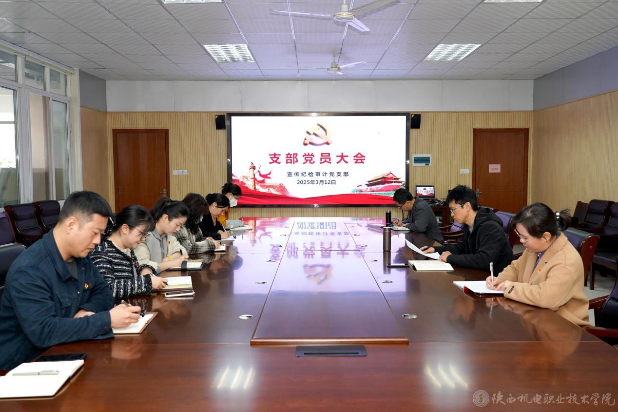 3月12日上午,宣传纪检审计党支部在蟠龙校区图书馆二楼会议室召开党员大会,支部书记李明主持会议并讲话。全体党员、入党积极分子参加会议。